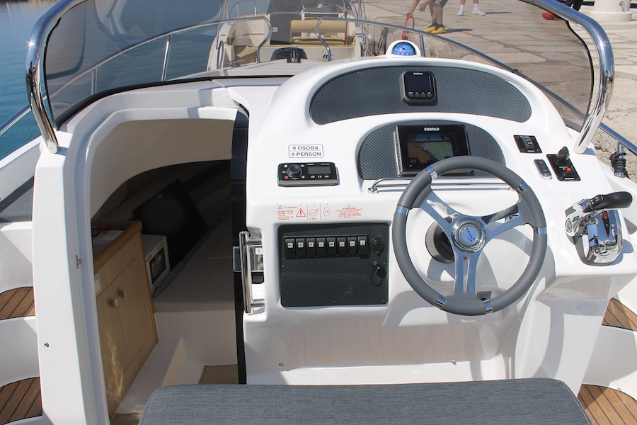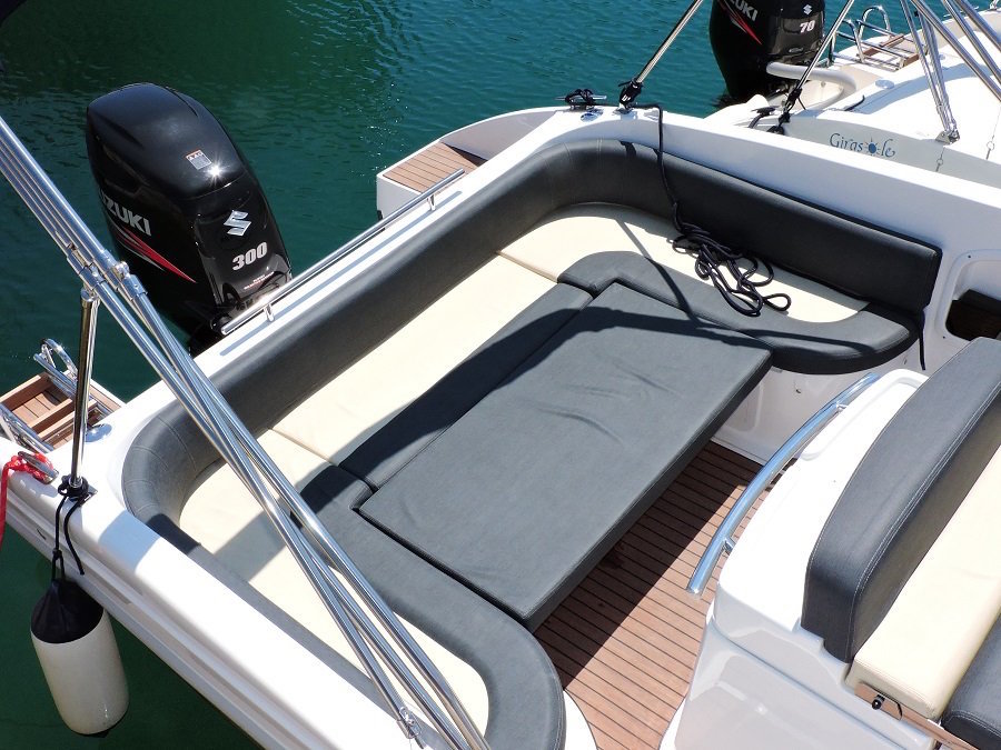 Berendezés: bimini top, napernyő, jelfogó, tűzoltó készülék, 2 horgony, mellkas, sárvédő, hajózási térkép, jel rakéták, mentőmellények, iránytű, létra, WC, GPS, rádió CD, bluetooth, 12V socket, hűtőszekrény, gáztűzhely